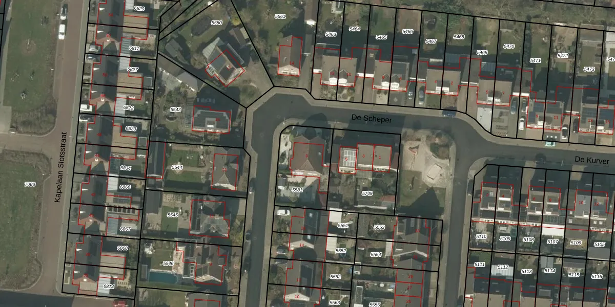 Het perceel waarop De Scheper 9 staat heeft een oppervlakte van 448 m². Dit is een groot perceel. De perceeloppervlakte wordt geregistreerd door het Kadaster. Gedetailleerde informatie over de maten van dit perceel kunt u vinden in het rapport Kadastrale kaart met maatvoering van De Scheper 9.