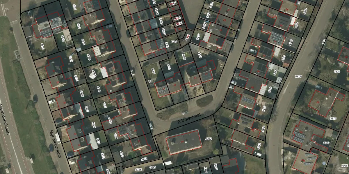 E Dorsstraat 15 is gelegen op kadastraal perceel GBV00C4047. Deze kadastrale aanduiding is uniek en wordt gebruikt door het Kadaster om eigendomsrechten en andere zakelijke rechten vast te leggen. Het perceel maakt onderdeel uit van de kadastrale gemeente Grubbenvorst.
