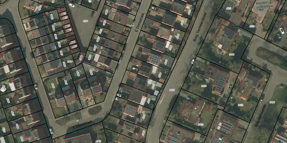 Het perceel waarop E Dorsstraat 32 staat heeft een oppervlakte van 277 m². Dit is een middelgroot perceel. De perceeloppervlakte wordt geregistreerd door het Kadaster. Gedetailleerde informatie over de maten van dit perceel kunt u vinden in het rapport Kadastrale kaart met maatvoering van E Dorsstraat 32.
