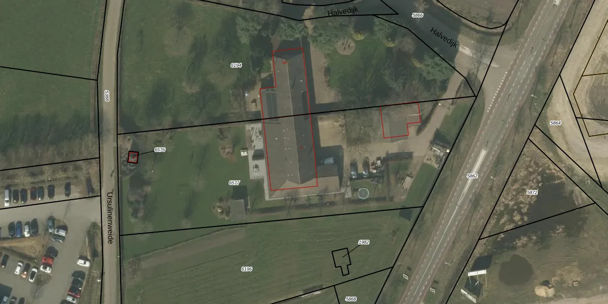 Halvedijk 1 is gelegen op kadastraal perceel GBV00C6577. Deze kadastrale aanduiding is uniek en wordt gebruikt door het Kadaster om eigendomsrechten en andere zakelijke rechten vast te leggen. Het perceel maakt onderdeel uit van de kadastrale gemeente Grubbenvorst.