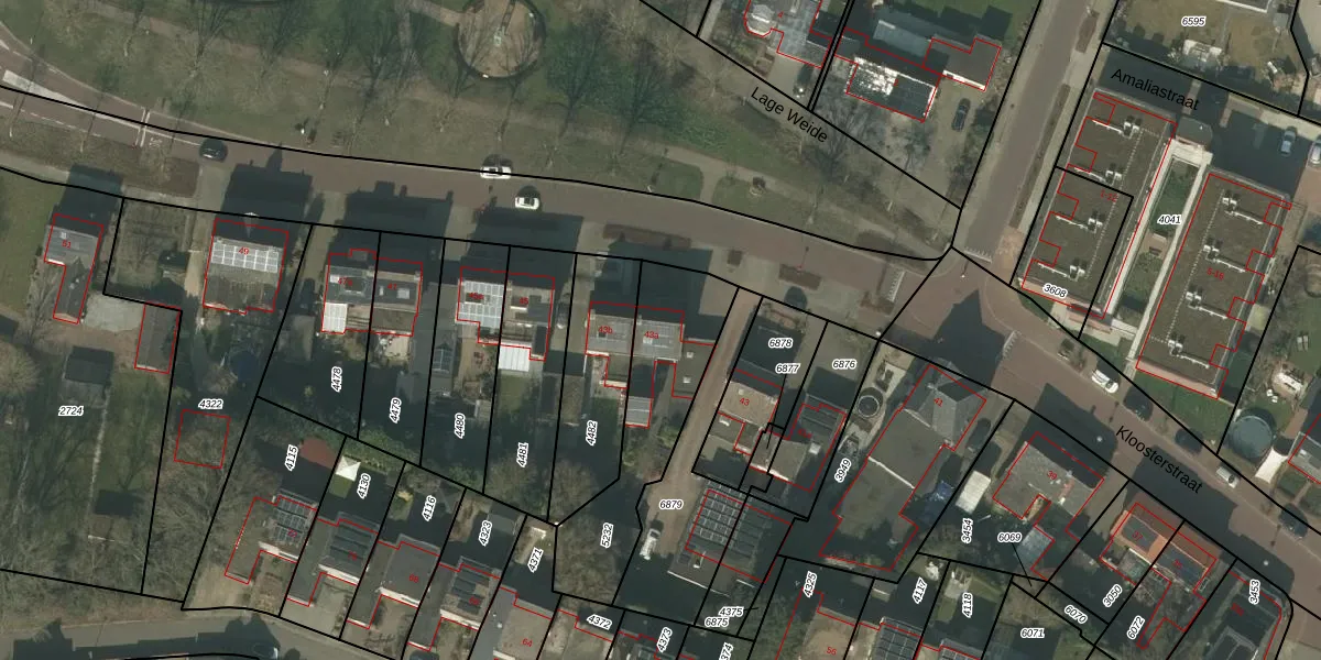 Het perceel waarop Kloosterstraat 43-a staat heeft een oppervlakte van 540 m². Dit is een groot perceel. De perceeloppervlakte wordt geregistreerd door het Kadaster. Gedetailleerde informatie over de maten van dit perceel kunt u vinden in het rapport Kadastrale kaart met maatvoering van Kloosterstraat 43-a.