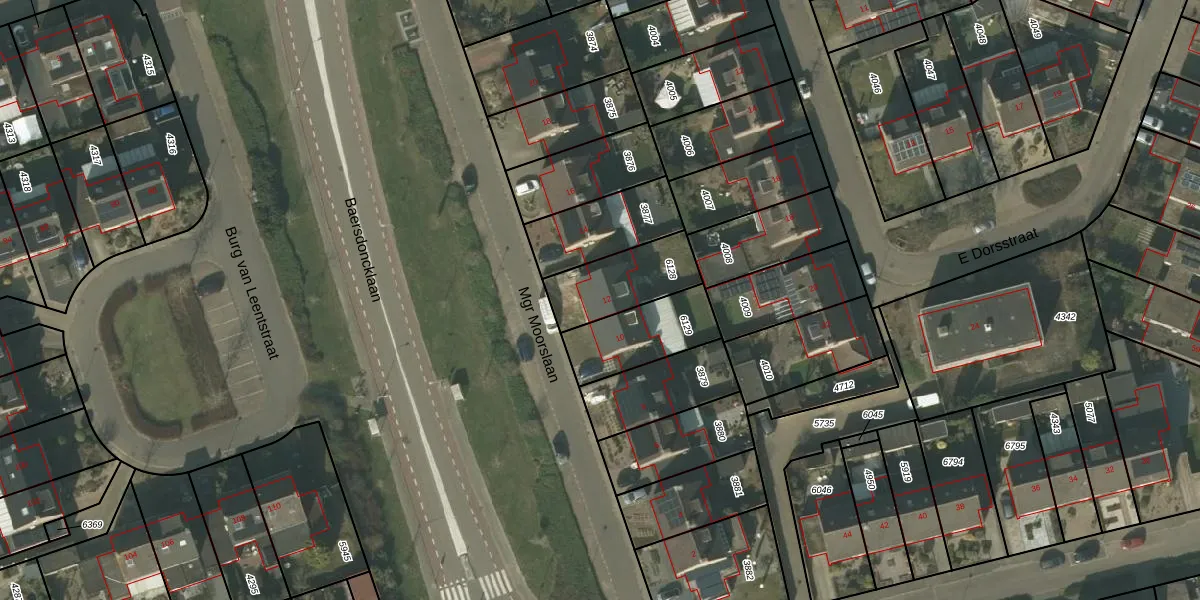 Mgr Moorslaan 12 is gelegen op kadastraal perceel GBV00C6128. Deze kadastrale aanduiding is uniek en wordt gebruikt door het Kadaster om eigendomsrechten en andere zakelijke rechten vast te leggen. Het perceel maakt onderdeel uit van de kadastrale gemeente Grubbenvorst.
