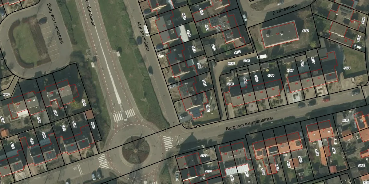 Mgr Moorslaan 4 is gelegen op kadastraal perceel GBV00C3881. Deze kadastrale aanduiding is uniek en wordt gebruikt door het Kadaster om eigendomsrechten en andere zakelijke rechten vast te leggen. Het perceel maakt onderdeel uit van de kadastrale gemeente Grubbenvorst.
