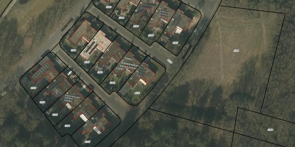 Het perceel waarop Molenveld 16 staat heeft een oppervlakte van 540 m². Dit is een groot perceel. De perceeloppervlakte wordt geregistreerd door het Kadaster. Gedetailleerde informatie over de maten van dit perceel kunt u vinden in het rapport Kadastrale kaart met maatvoering van Molenveld 16.