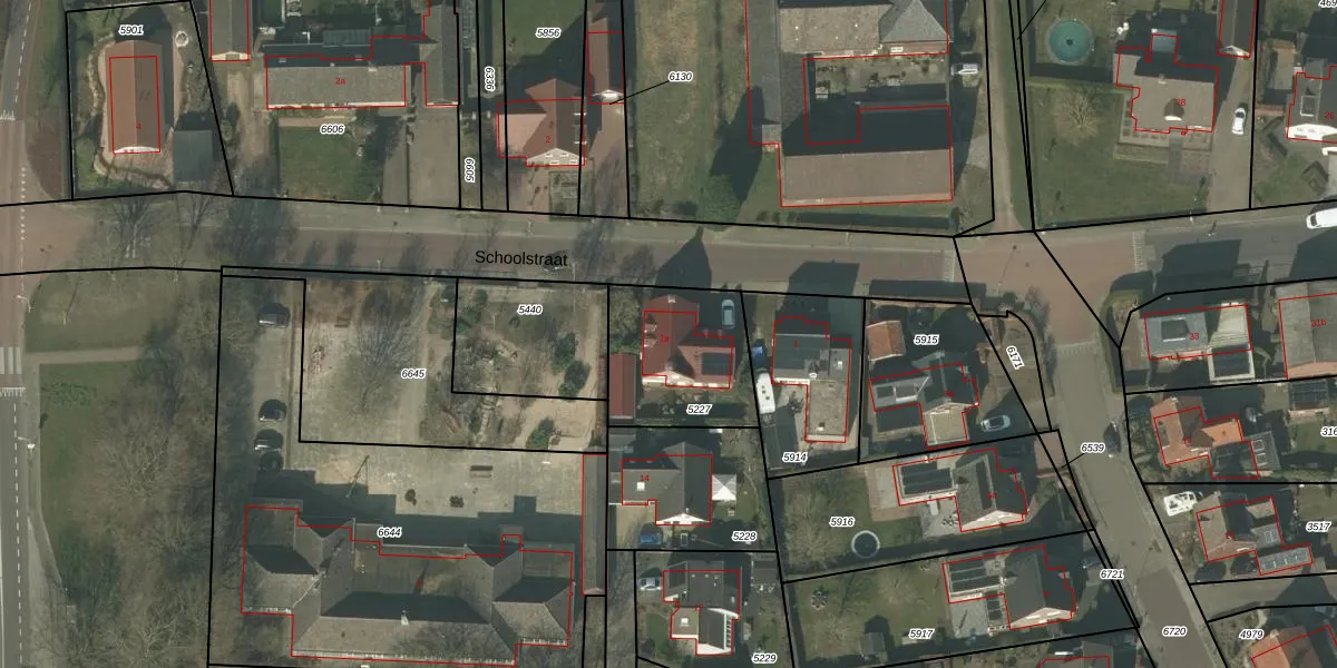Schoolstraat 1-a is gelegen op kadastraal perceel GBV00C5227. Deze kadastrale aanduiding is uniek en wordt gebruikt door het Kadaster om eigendomsrechten en andere zakelijke rechten vast te leggen. Het perceel maakt onderdeel uit van de kadastrale gemeente Grubbenvorst.
