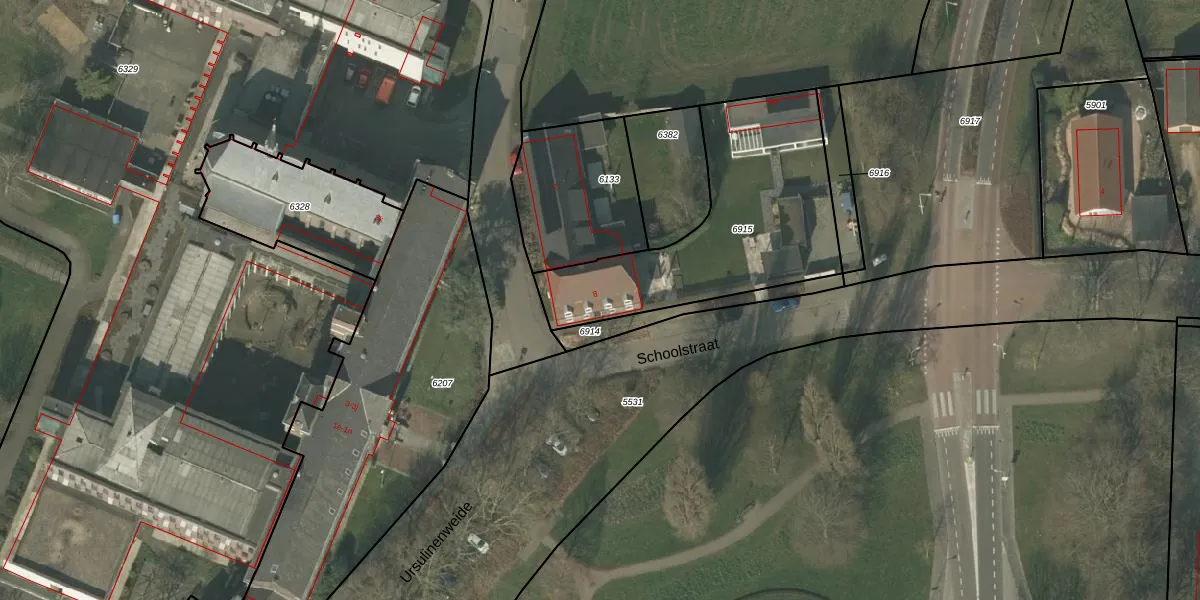 Schoolstraat 8 is gelegen op kadastraal perceel GBV00C6915. Deze kadastrale aanduiding is uniek en wordt gebruikt door het Kadaster om eigendomsrechten en andere zakelijke rechten vast te leggen. Het perceel maakt onderdeel uit van de kadastrale gemeente Grubbenvorst.