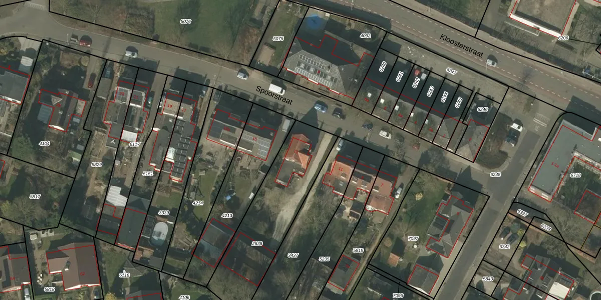 Het perceel waarop Spoorstraat 13 staat heeft een oppervlakte van 1000 m². Dit is een zeer groot perceel. De perceeloppervlakte wordt geregistreerd door het Kadaster. Gedetailleerde informatie over de maten van dit perceel kunt u vinden in het rapport Kadastrale kaart met maatvoering van Spoorstraat 13.