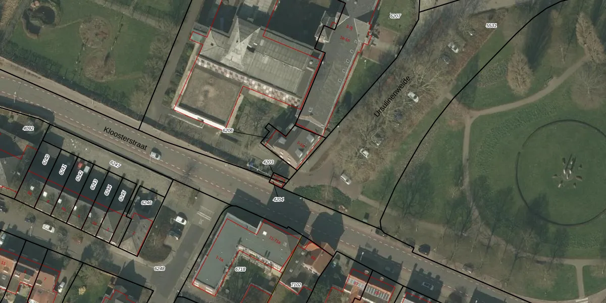 Ursulinenweide 1 is gelegen op kadastraal perceel GBV00C6206. Deze kadastrale aanduiding is uniek en wordt gebruikt door het Kadaster om eigendomsrechten en andere zakelijke rechten vast te leggen. Het perceel maakt onderdeel uit van de kadastrale gemeente Grubbenvorst.
