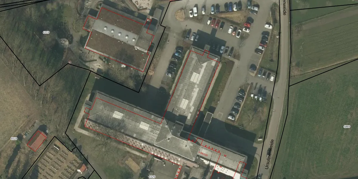 Het perceel waarop Ursulinenweide 5-K-7 staat heeft een oppervlakte van 1,4 ha. Dit is een zeer groot perceel. De perceeloppervlakte wordt geregistreerd door het Kadaster. Gedetailleerde informatie over de maten van dit perceel kunt u vinden in het rapport Kadastrale kaart met maatvoering van Ursulinenweide 5-K-7.