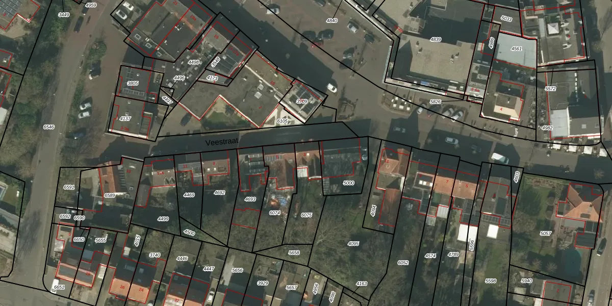 Het perceel waarop Veestraat 3 staat heeft een oppervlakte van 312 m². Dit is een groot perceel. De perceeloppervlakte wordt geregistreerd door het Kadaster. Gedetailleerde informatie over de maten van dit perceel kunt u vinden in het rapport Kadastrale kaart met maatvoering van Veestraat 3.