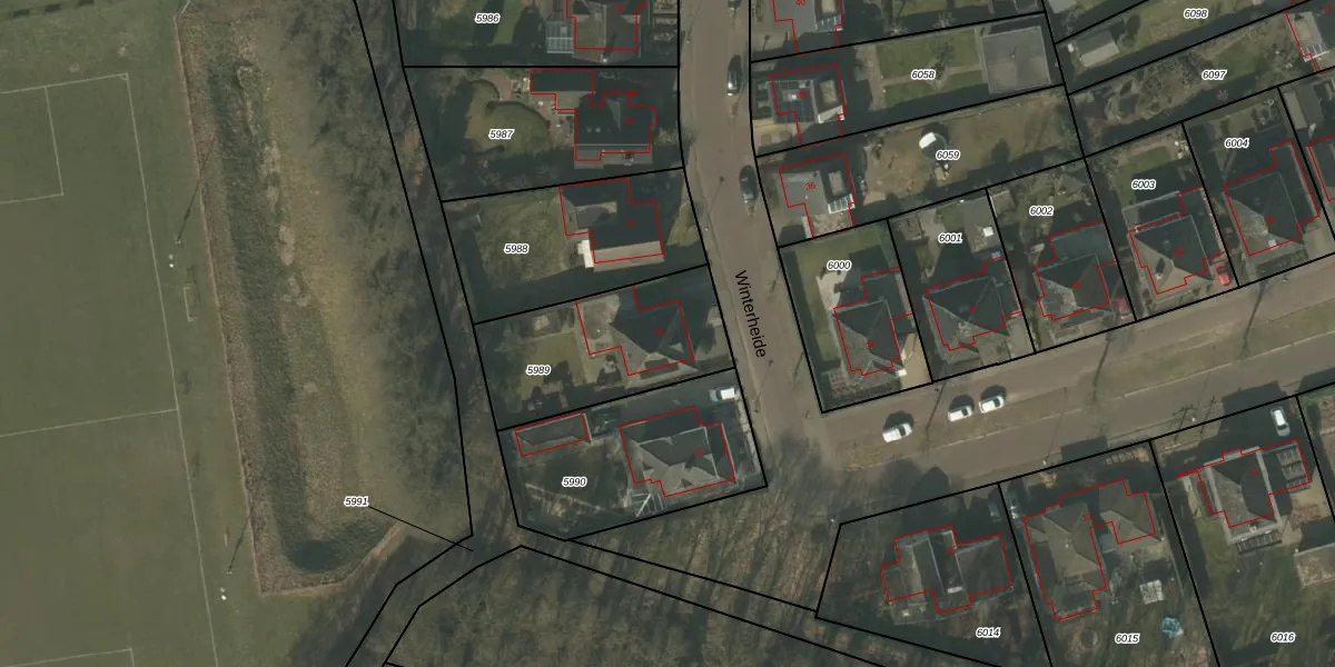 Het perceel waarop Winterheide 19 staat heeft een oppervlakte van 593 m². Dit is een groot perceel. De perceeloppervlakte wordt geregistreerd door het Kadaster. Gedetailleerde informatie over de maten van dit perceel kunt u vinden in het rapport Kadastrale kaart met maatvoering van Winterheide 19.