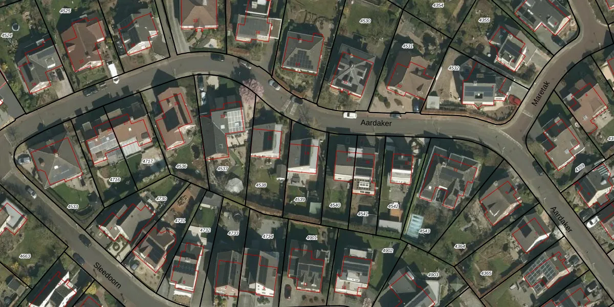Het perceel waarop Aardaker 19 staat heeft een oppervlakte van 387 m². Dit is een groot perceel. De perceeloppervlakte wordt geregistreerd door het Kadaster. Gedetailleerde informatie over de maten van dit perceel kunt u vinden in het rapport Kadastrale kaart met maatvoering van Aardaker 19.