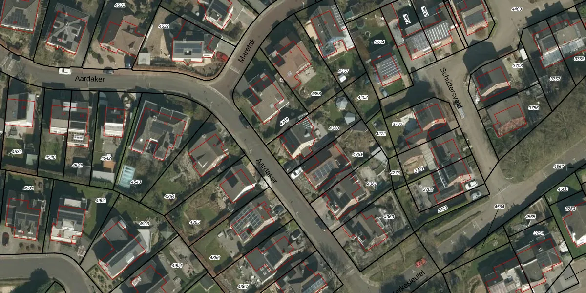 Gebruik de zoekbalk of klik op een perceel voor informatie over de adressen binnen dit perceel.