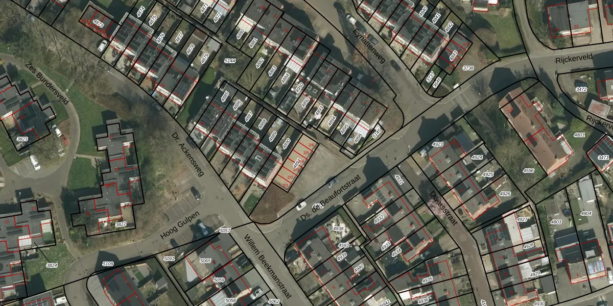 Dr. Ackensweg 2-5 is gelegen op kadastraal perceel GPN00A4891. Deze kadastrale aanduiding is uniek en wordt gebruikt door het Kadaster om eigendomsrechten en andere zakelijke rechten vast te leggen. Het perceel maakt onderdeel uit van de kadastrale gemeente Gulpen.