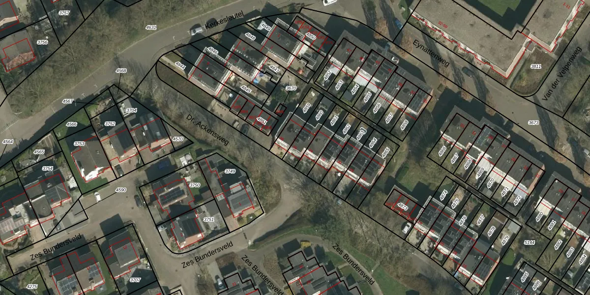 Gebruik de zoekbalk of klik op een perceel voor informatie over de adressen binnen dit perceel.