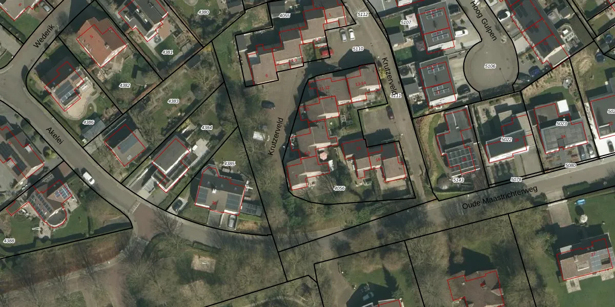 Het adres is gelegen op perceel 4056 in de sectie A en de kadastrale gemeente Gulpen. De kadastrale aanduiding is aldus GPN00-A-4056. De gemiddelde perceelgrootte in Gulpen is 5041,2 m². Dit perceel is kleiner: de perceeloppervlakte bedraagt 1315 m². Het kleinste perceel in de kadastrale gemeente is 0 m² groot. De grootste perceeloppervlakte is 28,2 ha. Op het perceel zijn 11 adressen aanwezig. In de Basisregistratie Kadaster (BRK) werden de grenzen van het perceel geregistreerd op 09-02-2009.
