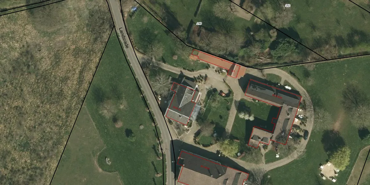 Het perceel waarop Landsrade 11 staat heeft een oppervlakte van 1,9 ha. Dit is een zeer groot perceel. De perceeloppervlakte wordt geregistreerd door het Kadaster. Gedetailleerde informatie over de maten van dit perceel kunt u vinden in het rapport Kadastrale kaart met maatvoering van Landsrade 11.