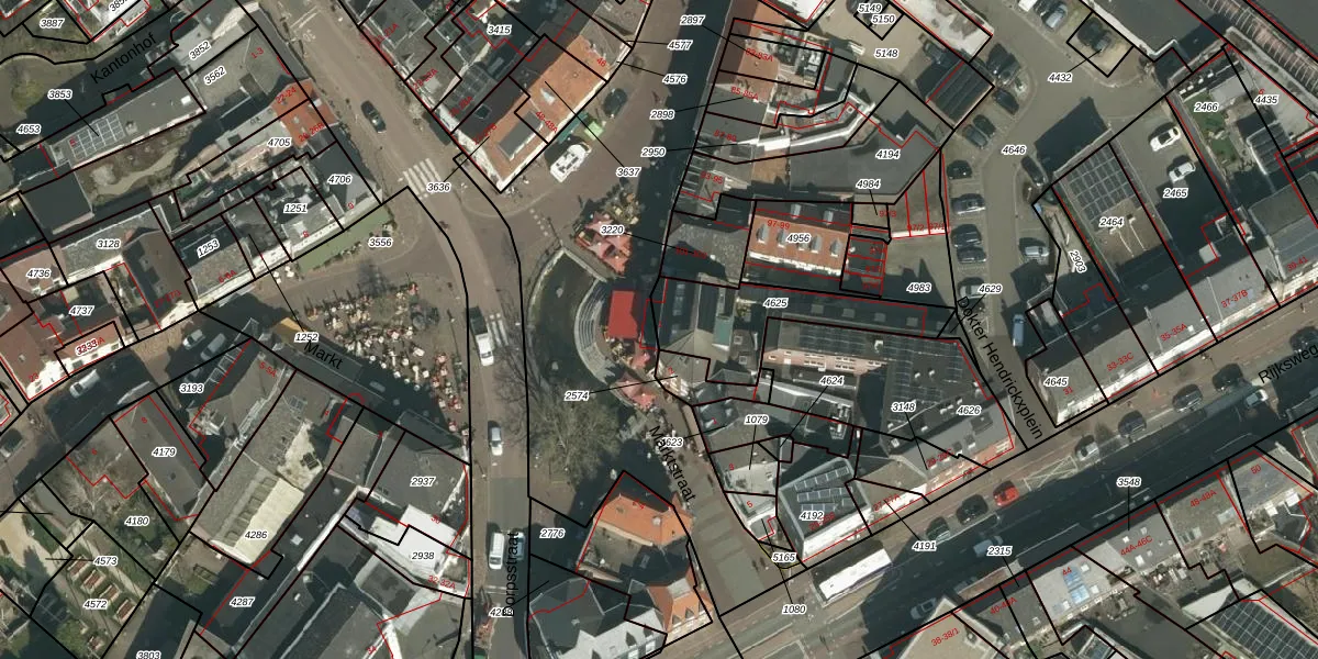 Het perceel waarop Markt 1 staat heeft een oppervlakte van 325 m². Dit is een groot perceel. De perceeloppervlakte wordt geregistreerd door het Kadaster. Gedetailleerde informatie over de maten van dit perceel kunt u vinden in het rapport Kadastrale kaart met maatvoering van Markt 1.