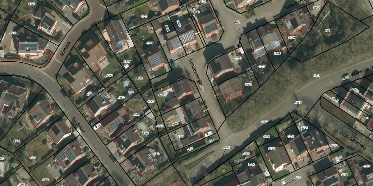 Schuttersveld 25 is gelegen op kadastraal perceel GPN00A3700. Deze kadastrale aanduiding is uniek en wordt gebruikt door het Kadaster om eigendomsrechten en andere zakelijke rechten vast te leggen. Het perceel maakt onderdeel uit van de kadastrale gemeente Gulpen.