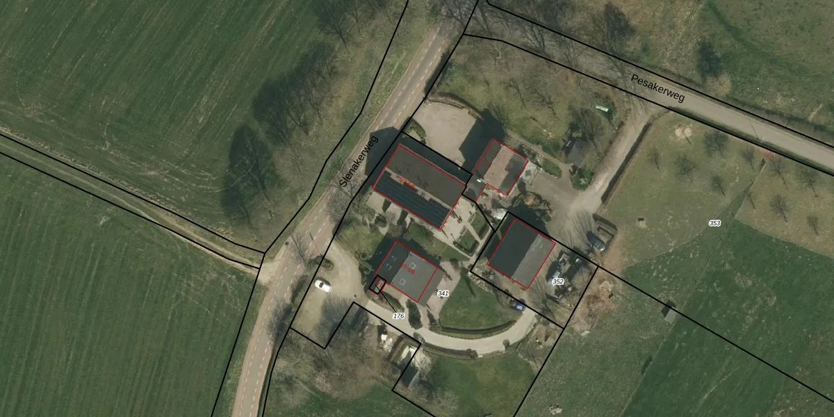 Slenakerweg 5-6 is gelegen op kadastraal perceel GPN00G341. Deze kadastrale aanduiding is uniek en wordt gebruikt door het Kadaster om eigendomsrechten en andere zakelijke rechten vast te leggen. Het perceel maakt onderdeel uit van de kadastrale gemeente Gulpen.