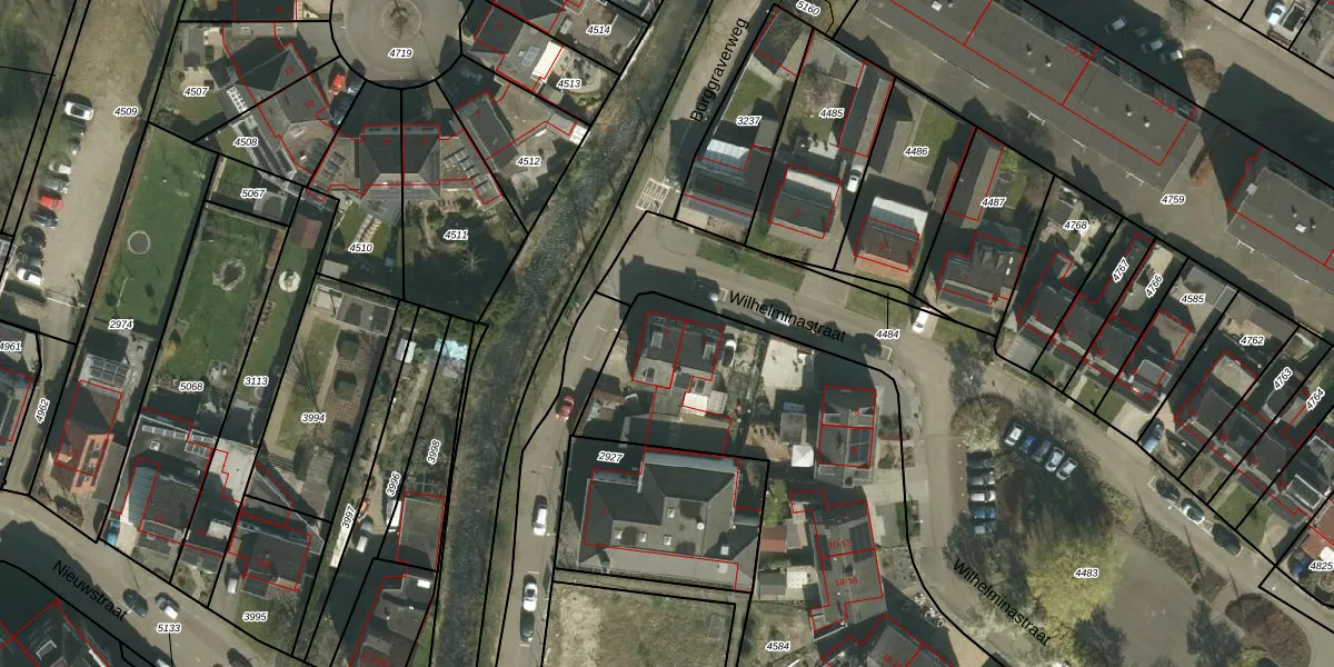 Het perceel waarop Wilhelminastraat 2 staat heeft een oppervlakte van 2332 m². Dit is een zeer groot perceel. De perceeloppervlakte wordt geregistreerd door het Kadaster. Gedetailleerde informatie over de maten van dit perceel kunt u vinden in het rapport Kadastrale kaart met maatvoering van Wilhelminastraat 2.
