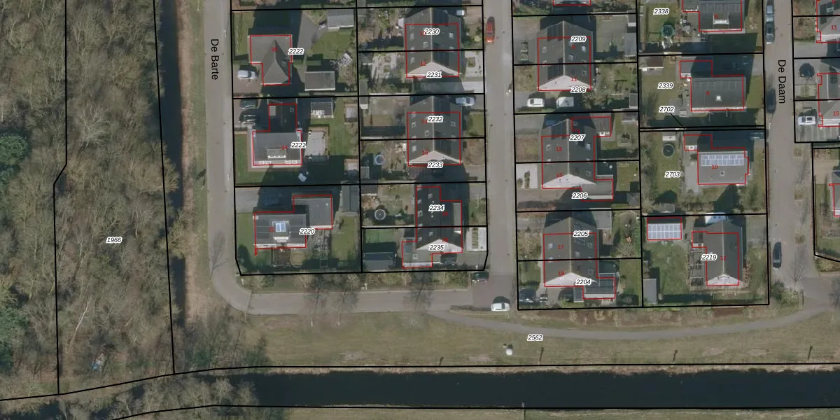 Het perceel waarop De Barte 18 staat heeft een oppervlakte van 315 m². Dit is een groot perceel. De perceeloppervlakte wordt geregistreerd door het Kadaster. Gedetailleerde informatie over de maten van dit perceel kunt u vinden in het rapport Kadastrale kaart met maatvoering van De Barte 18.