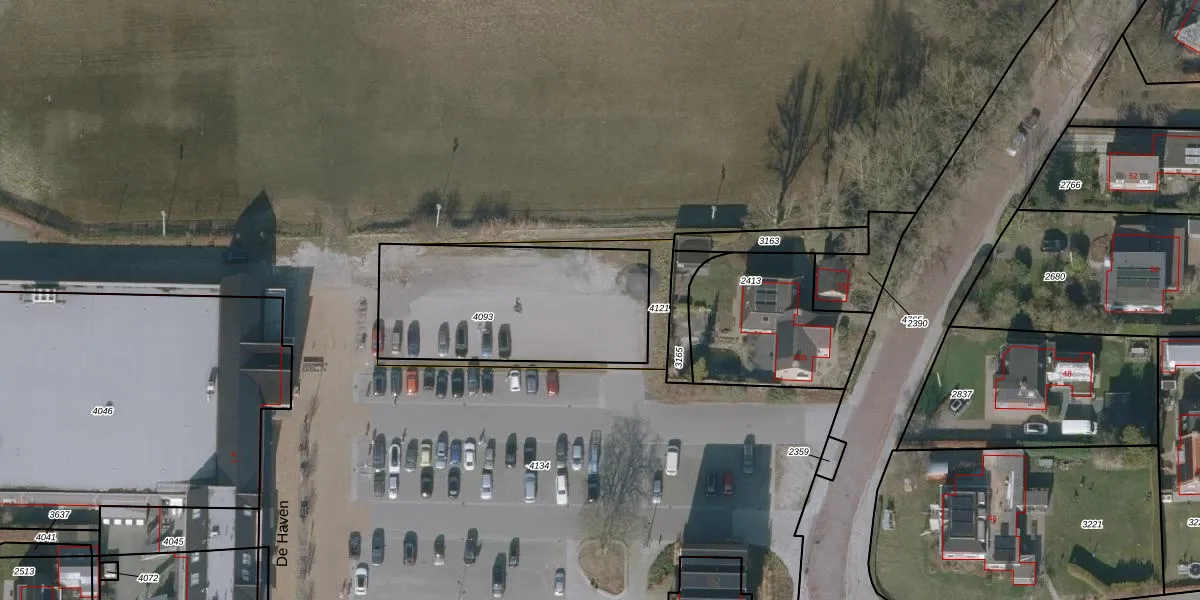 Het perceel waarop De Haven 15 staat heeft een oppervlakte van 860 m². Dit is een groot perceel. De perceeloppervlakte wordt geregistreerd door het Kadaster. Gedetailleerde informatie over de maten van dit perceel kunt u vinden in het rapport Kadastrale kaart met maatvoering van De Haven 15.
