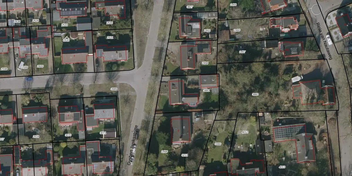 Gebruik de zoekbalk of klik op een perceel voor informatie over de adressen binnen dit perceel.