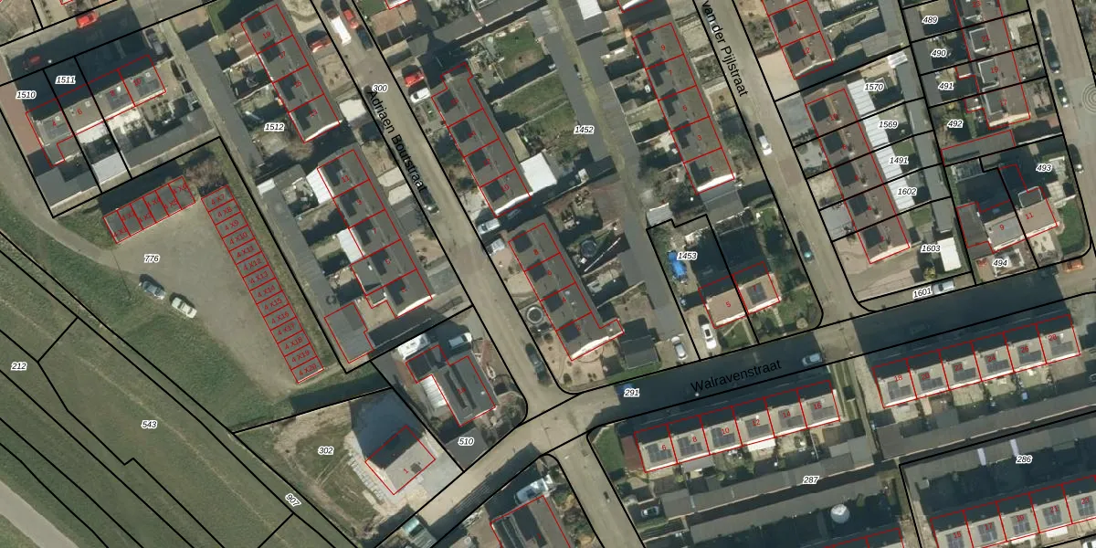 Het adres ligt op het perceel HTN05-K-1452, dat zich in de kadastrale gemeente Haaften bevindt. Het perceel is 4755 m² groot. Dat is kleiner dan de gemiddelde perceeloppervlakte in Haaften, dat op 6558,35 m² ligt. De grootste perceeloppervlakte in de kadastrale gemeente is 63,1 ha. De kleinste oppervlakte bedraagt 0 m². Er zijn 22 adressen aanwezig op het perceel. De huidige grenzen van het perceel zijn digitaal in de Basisregistratie Kadaster (BRK) geregistreerd op 02-05-2016.