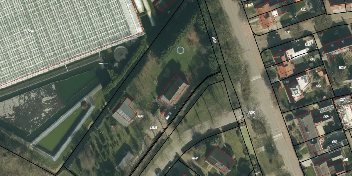 Het adres ligt op het perceel HTN05-K-393, dat zich in de kadastrale gemeente Haaften bevindt. Het perceel is 3985 m² groot. Dat is kleiner dan de gemiddelde perceeloppervlakte in Haaften, dat op 6564,39 m² ligt. De grootste perceeloppervlakte in de kadastrale gemeente is 63,1 ha. De kleinste oppervlakte bedraagt 0 m². Dit is het enige adres dat aanwezig is op het perceel. De laatste wijziging in het de Basisregistratie Kadaster (BRK) was op 01-08-2007.