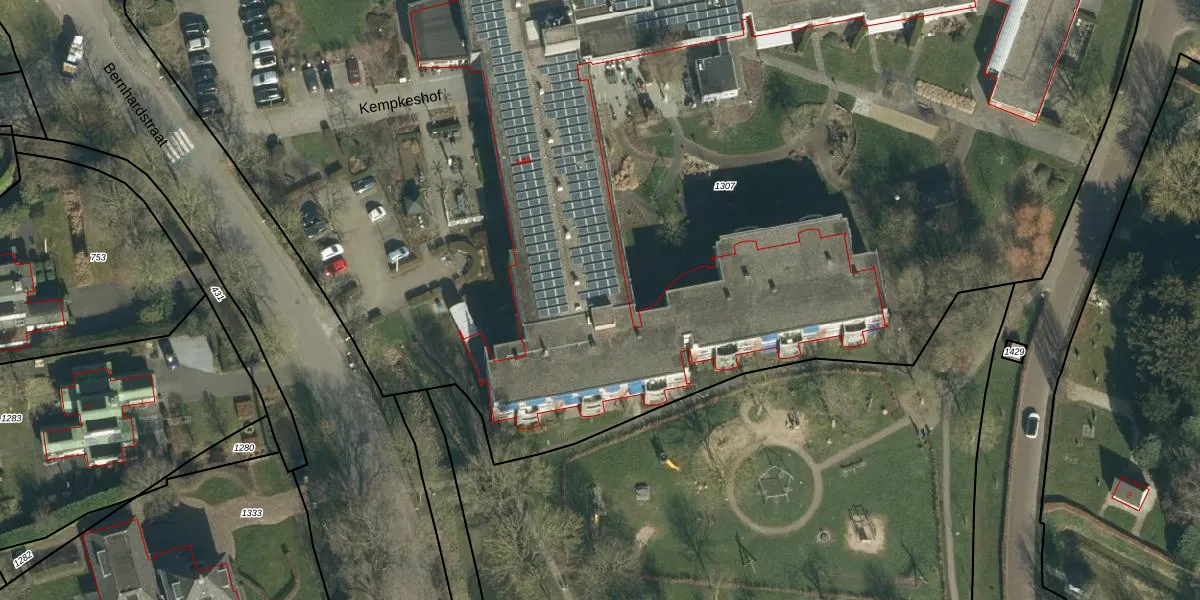 Het perceel waarop Bernhardstraat 4-A115 staat heeft een oppervlakte van 1,2 ha. Dit is een zeer groot perceel. De perceeloppervlakte wordt geregistreerd door het Kadaster. Gedetailleerde informatie over de maten van dit perceel kunt u vinden in het rapport Kadastrale kaart met maatvoering van Bernhardstraat 4-A115.