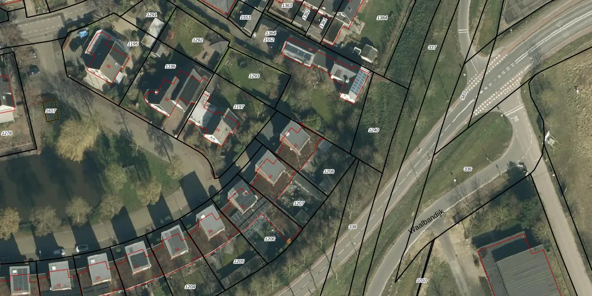 Het adres ligt op het perceel HTN05-K-1208, dat zich in de kadastrale gemeente Haaften bevindt. Het perceel is 446 m² groot. Dat is kleiner dan de gemiddelde perceeloppervlakte in Haaften, dat op 6564,39 m² ligt. Het kleinste perceel in de kadastrale gemeente is 0 m² groot. De grootste perceeloppervlakte is 63,1 ha. Er zijn geen andere adressen aanwezig op het perceel. In de Basisregistratie Kadaster (BRK) werden de grenzen van het perceel geregistreerd op 28-05-2010.
