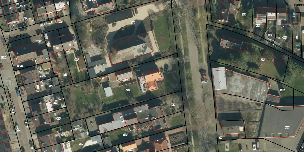 Dreef 21 is gelegen op kadastraal perceel HTN05K257. Deze kadastrale aanduiding is uniek en wordt gebruikt door het Kadaster om eigendomsrechten en andere zakelijke rechten vast te leggen. Het perceel maakt onderdeel uit van de kadastrale gemeente Haaften.