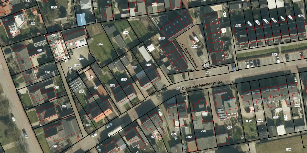 Dutry van Haeftenstraat 13 is gelegen op kadastraal perceel HTN05K1469. Deze kadastrale aanduiding is uniek en wordt gebruikt door het Kadaster om eigendomsrechten en andere zakelijke rechten vast te leggen. Het perceel maakt onderdeel uit van de kadastrale gemeente Haaften.