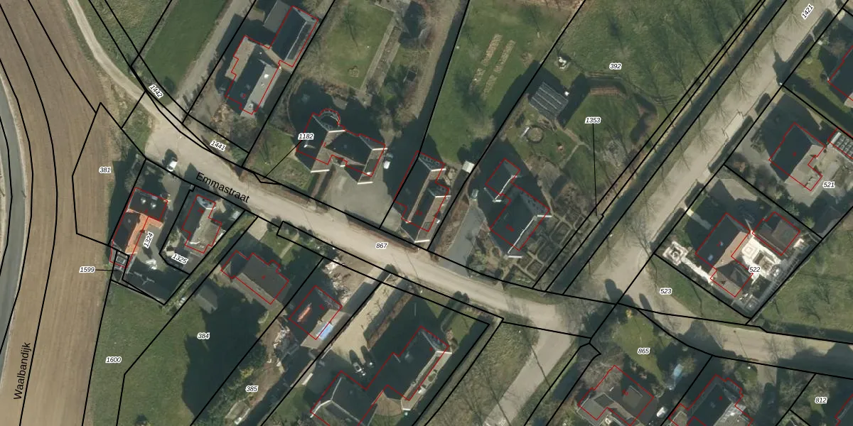 Emmastraat 13 is gelegen op kadastraal perceel HTN05K307. Deze kadastrale aanduiding is uniek en wordt gebruikt door het Kadaster om eigendomsrechten en andere zakelijke rechten vast te leggen. Het perceel maakt onderdeel uit van de kadastrale gemeente Haaften.