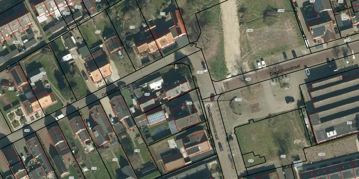 Goudensteinstraat 41 is gelegen op kadastraal perceel HTN05K606. Deze kadastrale aanduiding is uniek en wordt gebruikt door het Kadaster om eigendomsrechten en andere zakelijke rechten vast te leggen. Het perceel maakt onderdeel uit van de kadastrale gemeente Haaften.