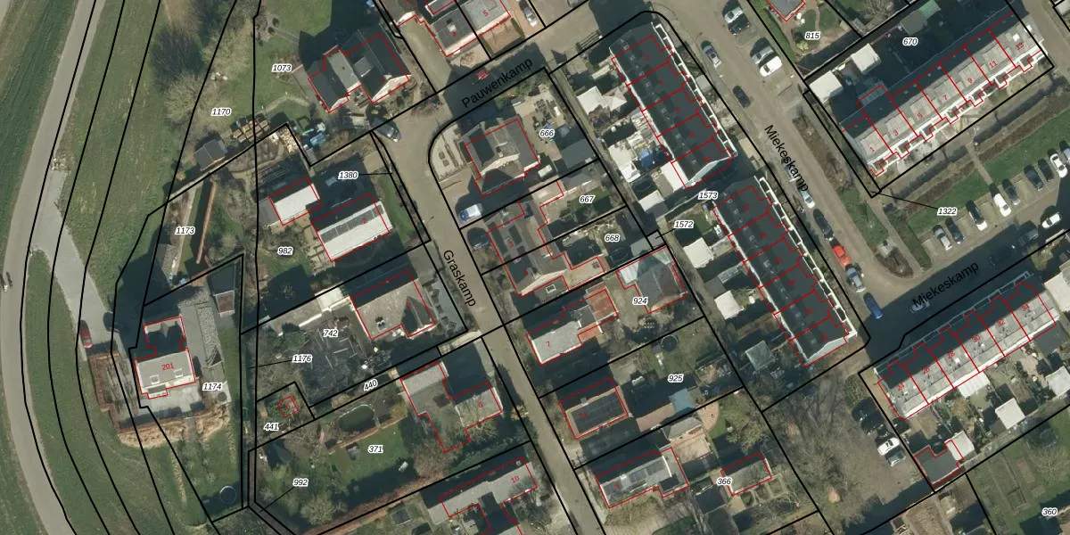 Het perceel waarop Graskamp 5 staat heeft een oppervlakte van 310 m². Dit is een groot perceel. De perceeloppervlakte wordt geregistreerd door het Kadaster. Gedetailleerde informatie over de maten van dit perceel kunt u vinden in het rapport Kadastrale kaart met maatvoering van Graskamp 5.