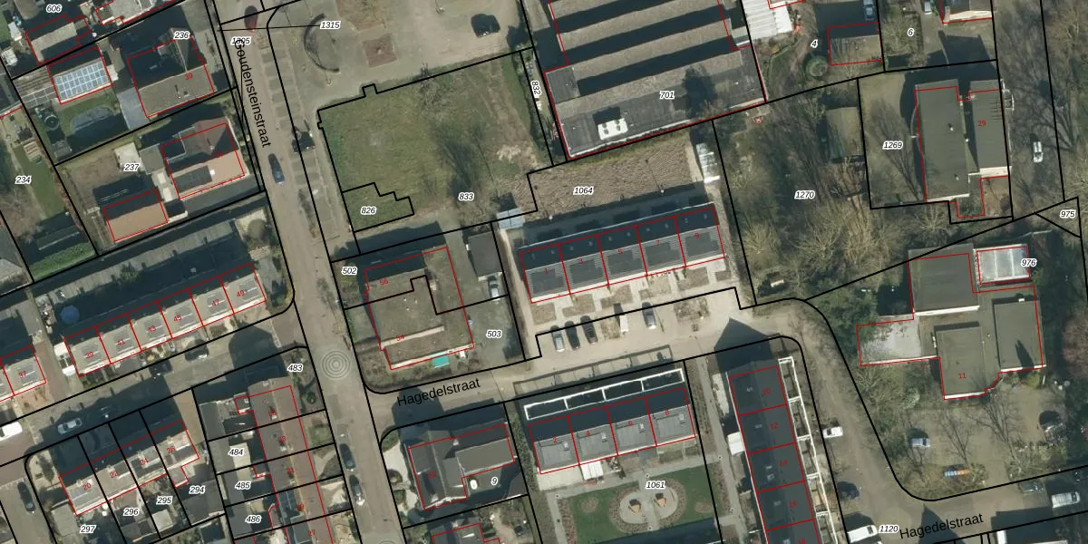 Hagedelstraat 1 is gelegen op kadastraal perceel HTN05K1064. Deze kadastrale aanduiding is uniek en wordt gebruikt door het Kadaster om eigendomsrechten en andere zakelijke rechten vast te leggen. Het perceel maakt onderdeel uit van de kadastrale gemeente Haaften.