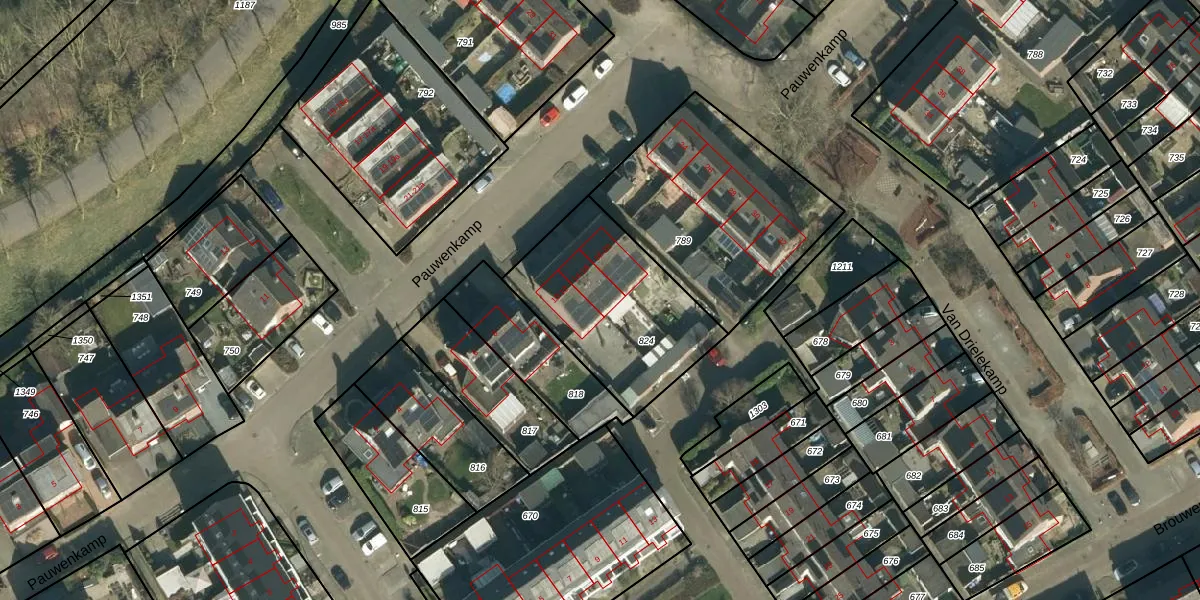 Het perceel waarop Pauwenkamp 18 staat heeft een oppervlakte van 663 m². Dit is een groot perceel. De perceeloppervlakte wordt geregistreerd door het Kadaster. Gedetailleerde informatie over de maten van dit perceel kunt u vinden in het rapport Kadastrale kaart met maatvoering van Pauwenkamp 18.