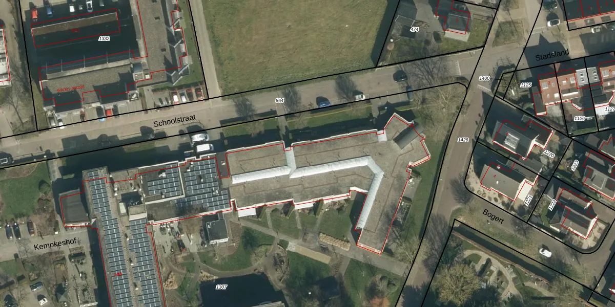 Het perceel waarop Schoolstraat 18 staat heeft een oppervlakte van 1,2 ha. Dit is een zeer groot perceel. De perceeloppervlakte wordt geregistreerd door het Kadaster. Gedetailleerde informatie over de maten van dit perceel kunt u vinden in het rapport Kadastrale kaart met maatvoering van Schoolstraat 18.