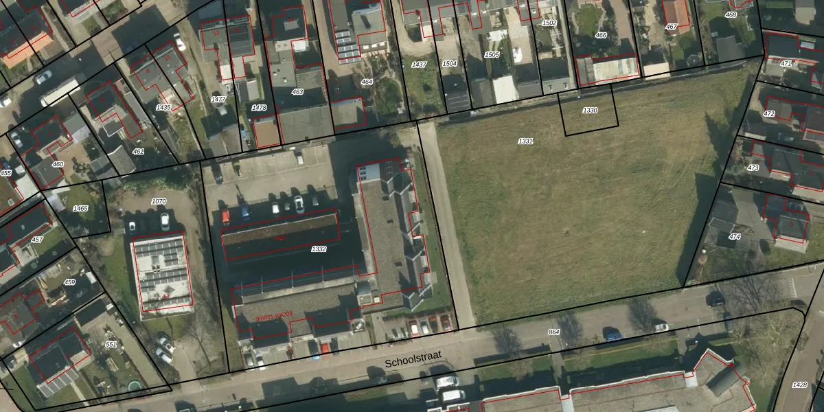 Het perceel waarop Schoolstraat 9-A006 staat heeft een oppervlakte van 2856 m². Dit is een zeer groot perceel. De perceeloppervlakte wordt geregistreerd door het Kadaster. Gedetailleerde informatie over de maten van dit perceel kunt u vinden in het rapport Kadastrale kaart met maatvoering van Schoolstraat 9-A006.