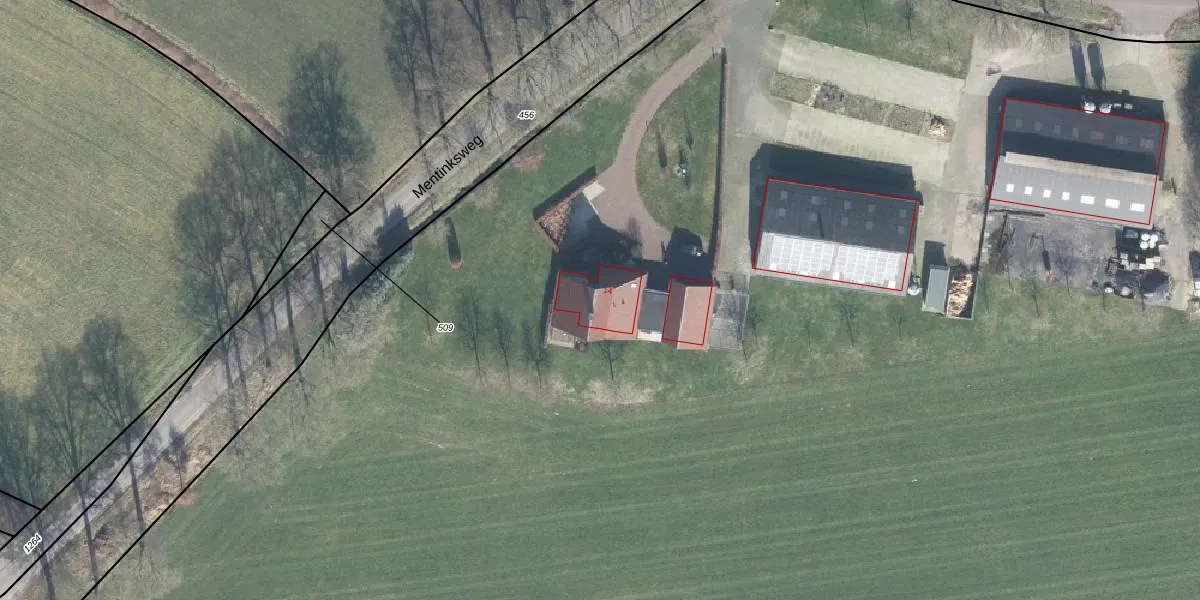 Het perceel waarop Mentinksweg 14 staat heeft een oppervlakte van 4,2 ha. Dit is een zeer groot perceel. De perceeloppervlakte wordt geregistreerd door het Kadaster. Gedetailleerde informatie over de maten van dit perceel kunt u vinden in het rapport Kadastrale kaart met maatvoering van Mentinksweg 14.