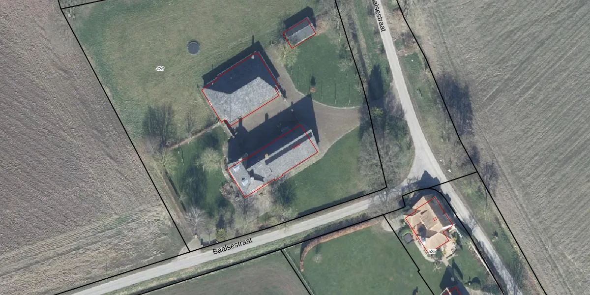 Het perceel waarop Baalsestraat 5-a staat heeft een oppervlakte van 6990 m². Dit is een zeer groot perceel. De perceeloppervlakte wordt geregistreerd door het Kadaster. Gedetailleerde informatie over de maten van dit perceel kunt u vinden in het rapport Kadastrale kaart met maatvoering van Baalsestraat 5-a.