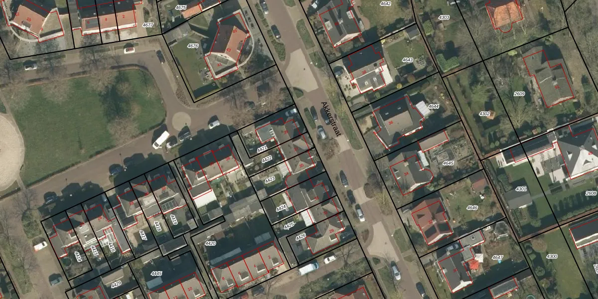 Akkerstraat 37 is gelegen op kadastraal perceel HRN02E4422. Deze kadastrale aanduiding is uniek en wordt gebruikt door het Kadaster om eigendomsrechten en andere zakelijke rechten vast te leggen. Het perceel maakt onderdeel uit van de kadastrale gemeente Haaren.