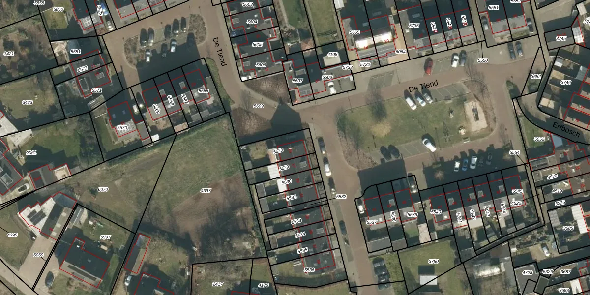 De Tiend 25 is gelegen op kadastraal perceel HRN02E5528. Deze kadastrale aanduiding is uniek en wordt gebruikt door het Kadaster om eigendomsrechten en andere zakelijke rechten vast te leggen. Het perceel maakt onderdeel uit van de kadastrale gemeente Haaren.