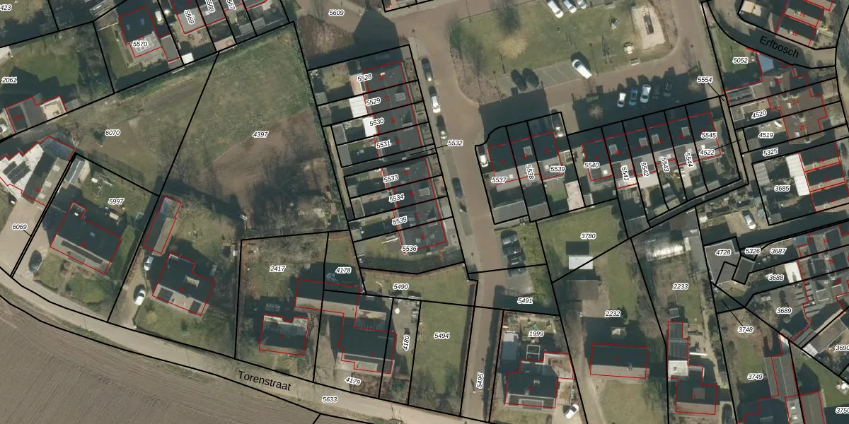 Het adres ligt op het perceel HRN02-E-5535, dat zich in de kadastrale gemeente Haaren bevindt. Het perceel is 125 m² groot. Dat is kleiner dan de gemiddelde perceeloppervlakte in Haaren, dat op 3521,24 m² ligt. Het grootste perceel in de kadastrale gemeente is 19,8 ha. Het kleinste perceel heeft een oppervlakte van 0 m². Er zijn geen andere adressen aanwezig op het perceel. De huidige grenzen van het perceel zijn digitaal in de Basisregistratie Kadaster (BRK) geregistreerd op 29-06-2015.