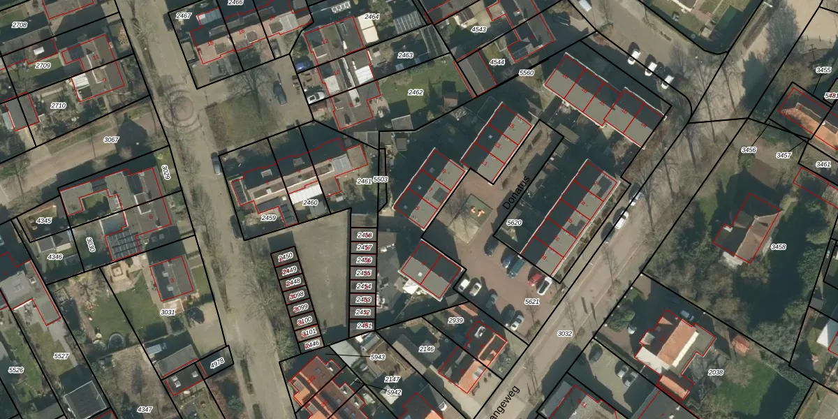 Het perceel waarop Donatus 5 staat heeft een oppervlakte van 2291 m². Dit is een zeer groot perceel. De perceeloppervlakte wordt geregistreerd door het Kadaster. Gedetailleerde informatie over de maten van dit perceel kunt u vinden in het rapport Kadastrale kaart met maatvoering van Donatus 5.