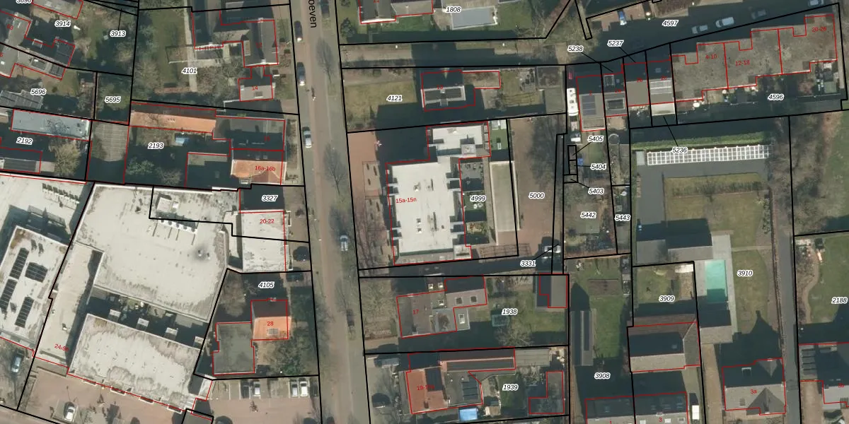 Het adres ligt op het perceel HRN02-E-4999, dat zich in de kadastrale gemeente Haaren bevindt. Het perceel is kleiner dan gemiddeld in Haaren. Het perceel is 1235 m² groot, terwijl het gemiddelde ligt op 3522 m². Het kleinste perceel in de kadastrale gemeente is 0 m² groot. De grootste perceeloppervlakte is 19,8 ha. Op het perceel liggen in totaal 12 adressen. De huidige grenzen van het perceel zijn digitaal in de Basisregistratie Kadaster (BRK) geregistreerd op 14-02-2008.