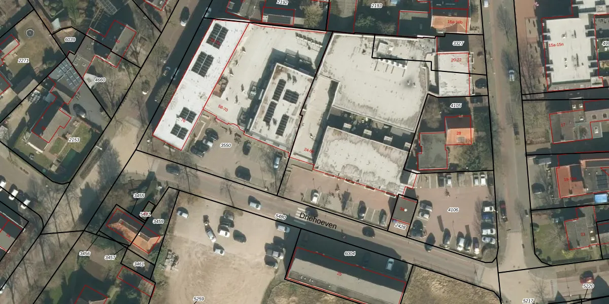 Het perceel waarop Driehoeven 56 staat heeft een oppervlakte van 2992 m². Dit is een zeer groot perceel. De perceeloppervlakte wordt geregistreerd door het Kadaster. Gedetailleerde informatie over de maten van dit perceel kunt u vinden in het rapport Kadastrale kaart met maatvoering van Driehoeven 56.