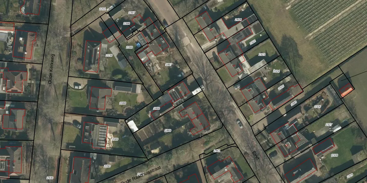 Eind 30 is gelegen op kadastraal perceel HRN02D1868. Deze kadastrale aanduiding is uniek en wordt gebruikt door het Kadaster om eigendomsrechten en andere zakelijke rechten vast te leggen. Het perceel maakt onderdeel uit van de kadastrale gemeente Haaren.